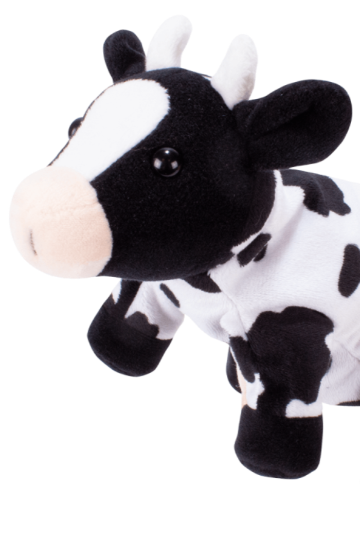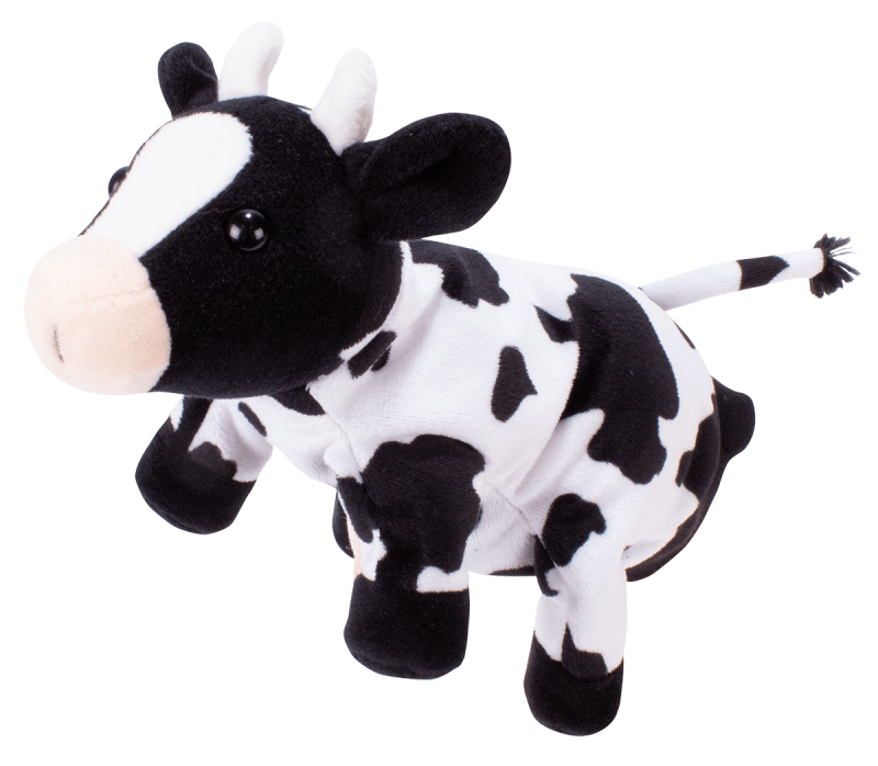 The holstein cow, which this handpuppet is inspired from, is believed to first become domesticated two thousand years ago in the Netherlands by mixing cows from Germany (black colored cows) and Holland (white colored cows). Ever since then the holstein cow has become a common sight on dairy farms around the globe.
