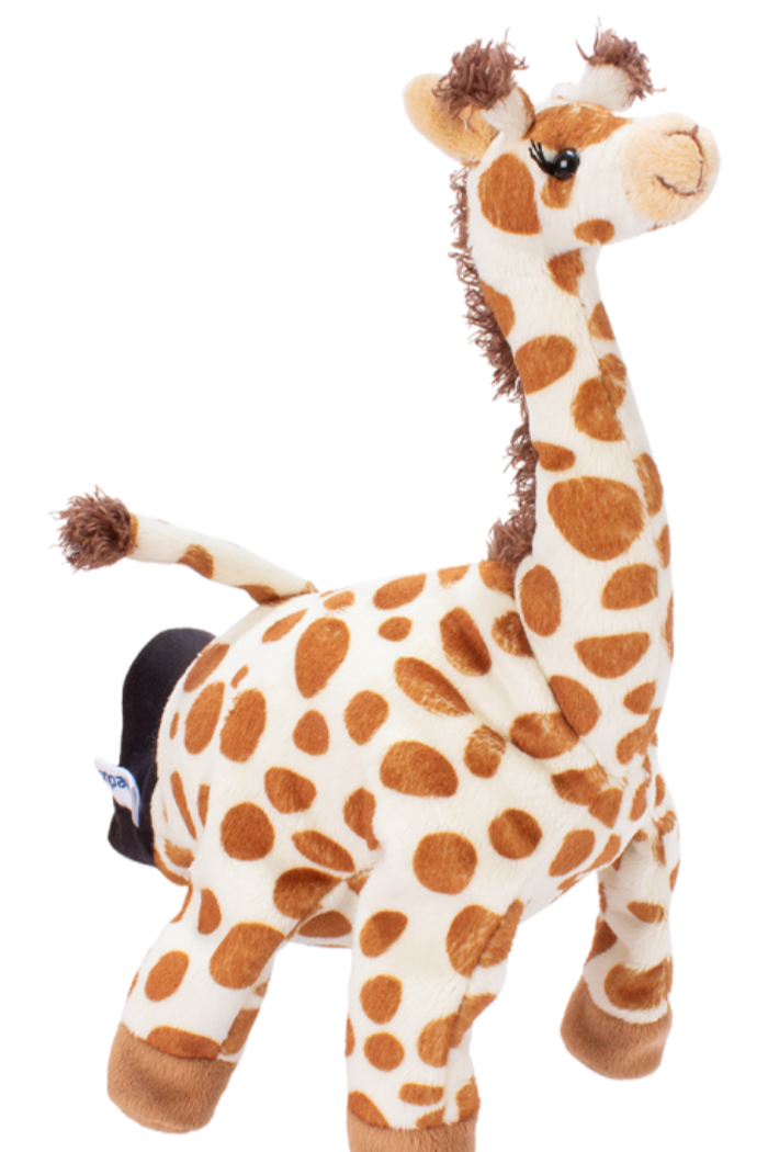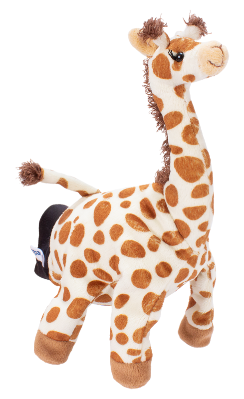This tan and brown spotted hand puppet giraffe will graze the tallest of imagination trees in play time with your little one.
