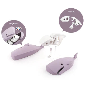 HALFTOYS® Sperm Whale is part of a collectible Half-Ocean series that combines multiple play styles into one package. Complete with a diorama for an immersive oceanic adventure, the toy has interactive magnets to satisfy snapping needs and a skeleton puzzle for endless tinkering. Collect and connect them all to create your own underwater paradise!