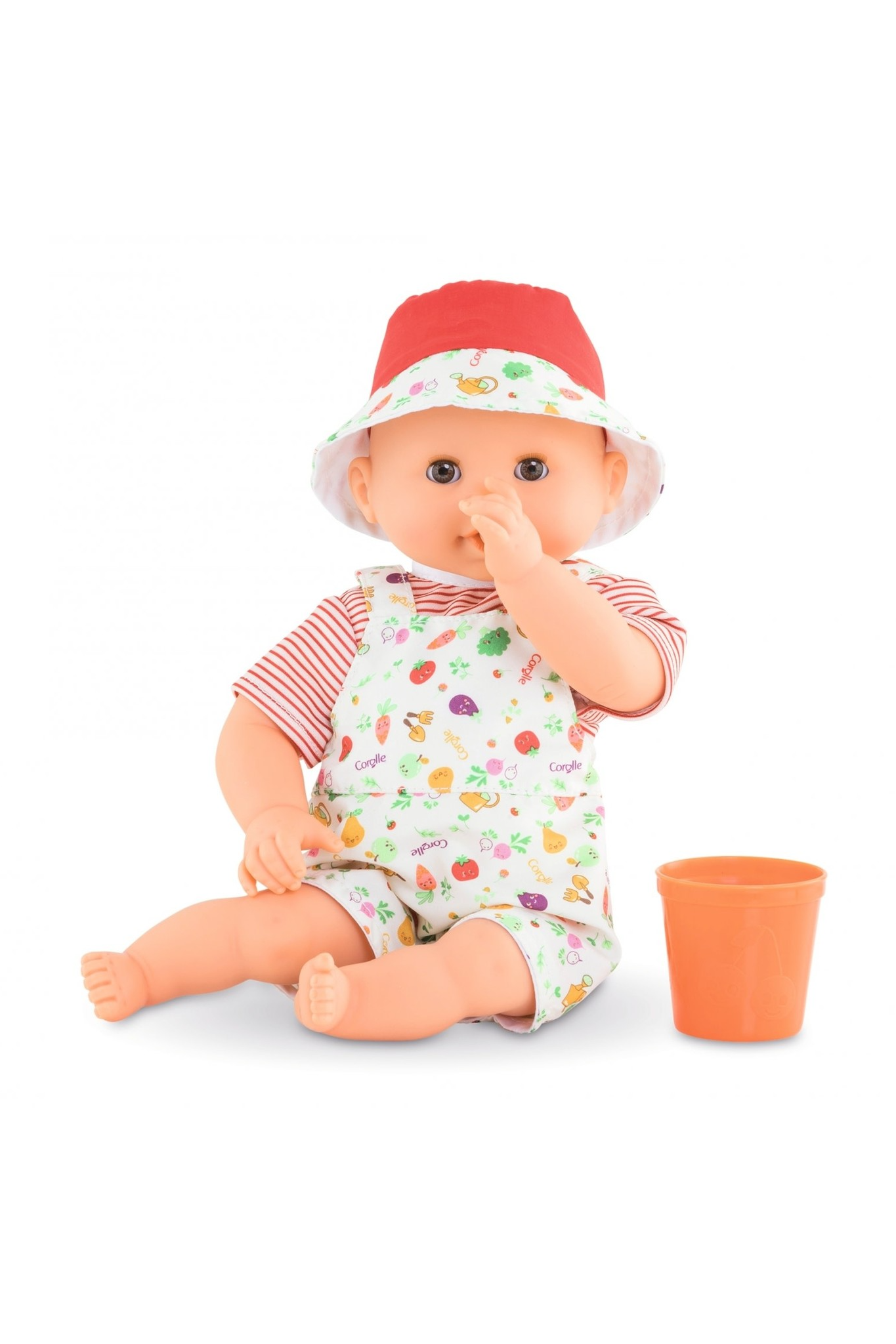 Dressed in a charming garden-print outfit and sun hat and complete with his own bath toy, Bébé Bath is part of the mon premier poupon Corolle collection of dolls, clothing and accessories for beginning doll play.