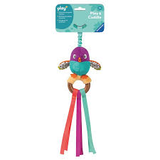 This loveable birdie will become a staple while on the go with your baby. Multisensory details will keep little fingers busy, and the contrasting colors offer engaging visual stimulation. Baby will love to grasp the long, soft and colorful ribbons or the birdie's wooden ring perch. As the bird is moved or shaken, hear cute chirping sounds that are sure to make baby giggle. Comes with a handy clip to take wherever you go! Ages infant and up.