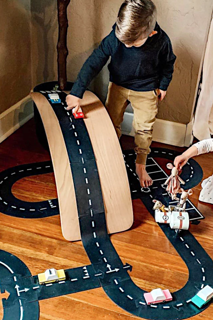 Waytoplay is more than a toy. Each set features easy to connect road segments. Straights, curves, parking spaces, roundabouts, junctions and more. Made of high grade, child safe rubber, simply roll out an adventure anywhere and anytime. Indoors and out! Let your child find its way to play and become king of the road. You can always add and expand your road by purchasing additional sets.