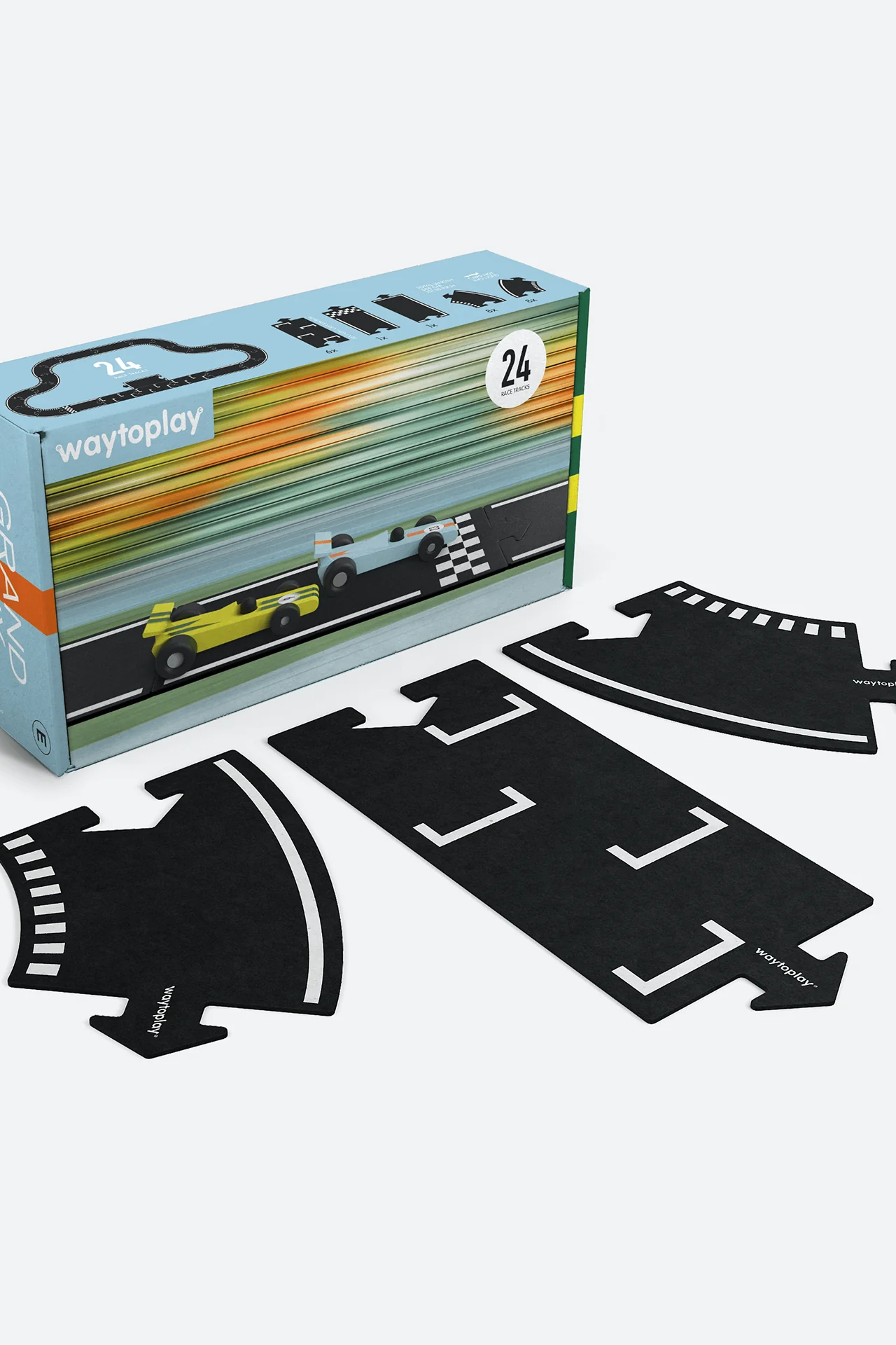 Kids just love car racing adventures. With their last gasp winners, cool underdogs and dastardly villains. Waytoplay Grand Prix set brings that excitement into your home. Countdown starts, amazing pit stops and daring takeovers. 24 specially printed road segments offer maximum racing fun