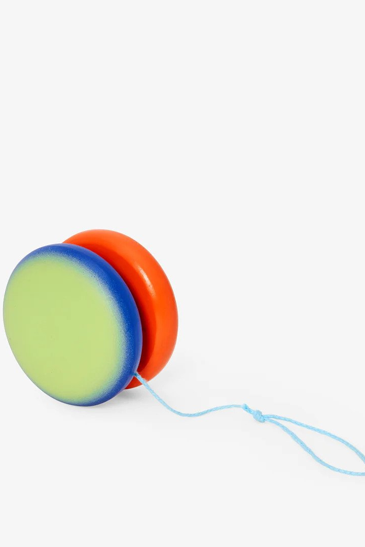 When a yoyo this good-looking comes around, one can’t resist taking a little trip to yesteryear. This nostalgic, wooden yoyo has a blue cotton string and colorful gradients on each side, resembling a sunrise and sunset. You just might be inspired to yoyo all day long.