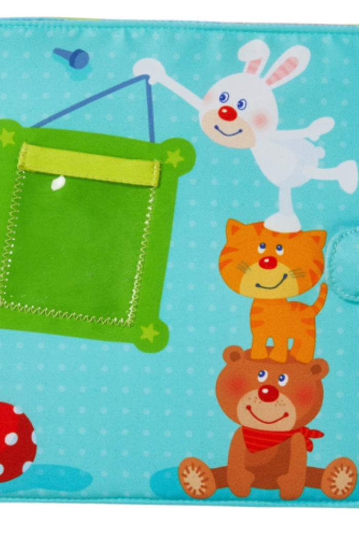 Age 12+ months. Lovely gift for the first birthday. Hold 8, 4" x 6" photos. Playful photo album with soft tab closure. Material: polyester, transparent film. Dimension 8" x 7.75"