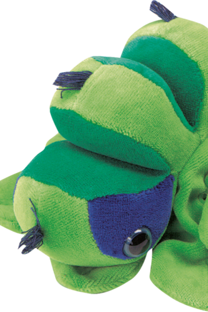 Munch, munch, Munch! This green and blue caterpillar is ever so hungry. Wiggle around the imagination playscape giving caterpillary advice to Alice or busily weave your next cocoon with this playful handpuppet.
