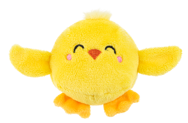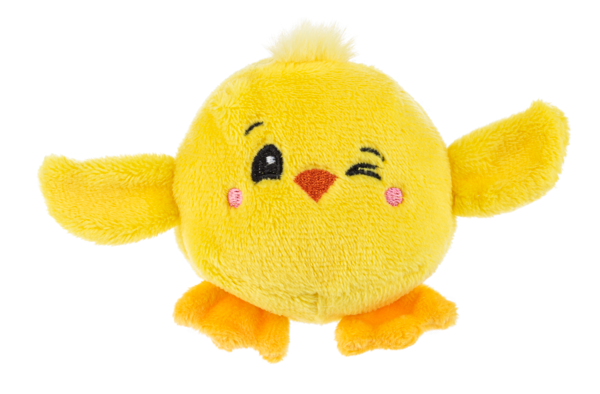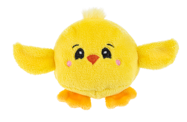 Tossimals Chick is a small plush shaped as a chick with one of four different expressions: sleepy chick, happy chick, winking chick, and excited chick.