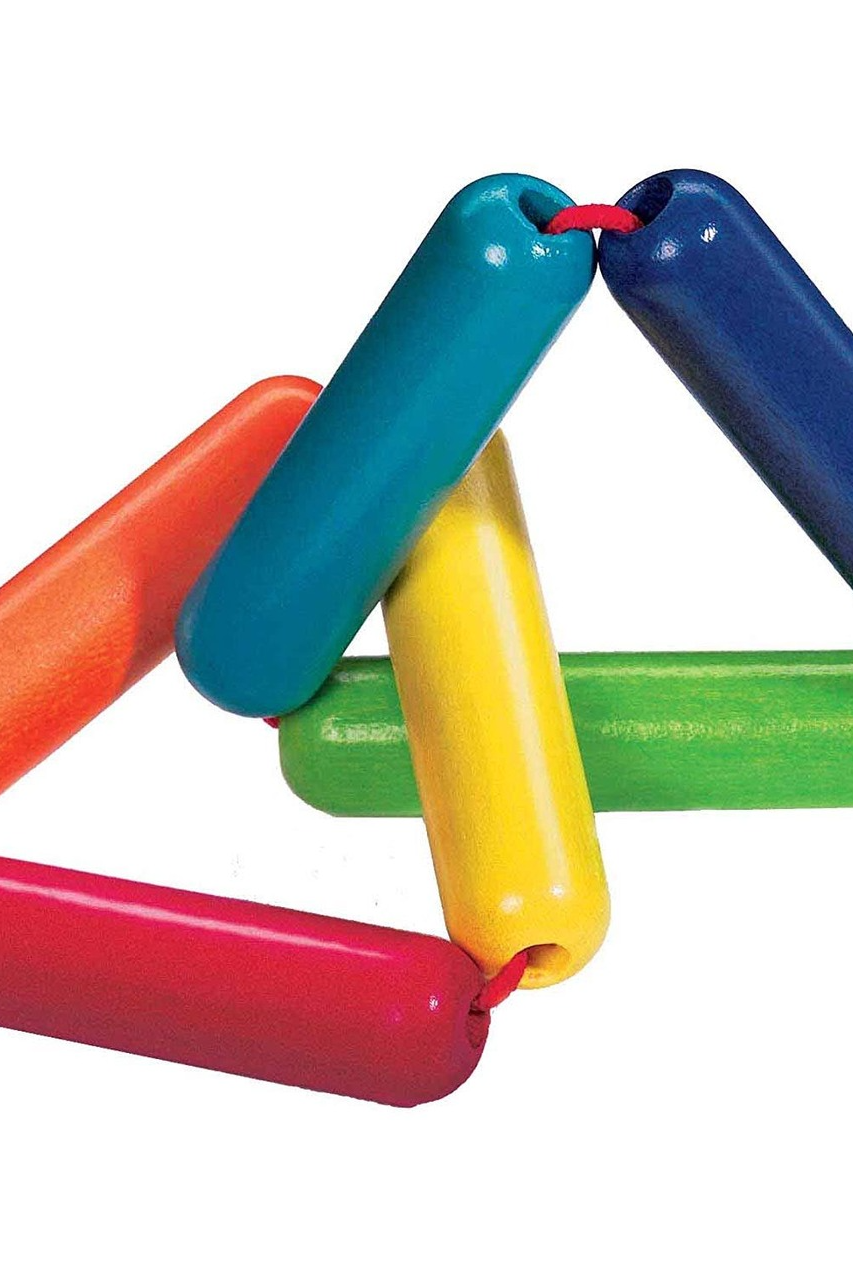 A HABA classic, your child is sure to love the Triangle Clutching Toy! It's brightly colored sides keep your child engaged as they learn the basic of clutching and grabbing. When knocked together the pieces make a soft rattling sound.