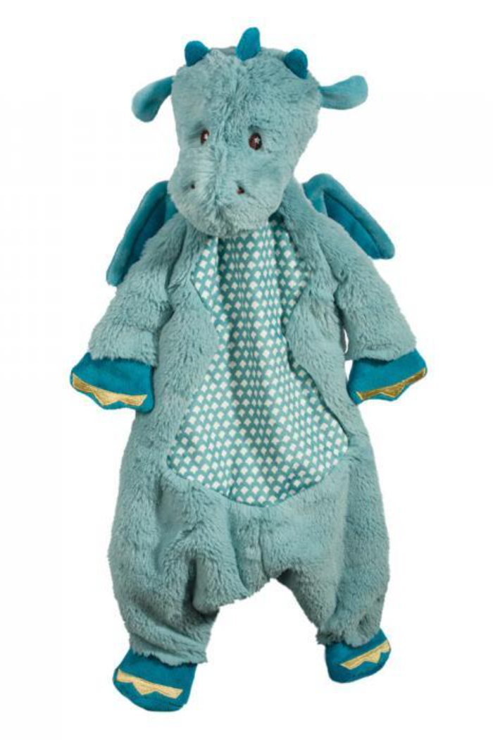 Age 0+ months. Dragon is 19" . Machine washable and exceed current safety standards.