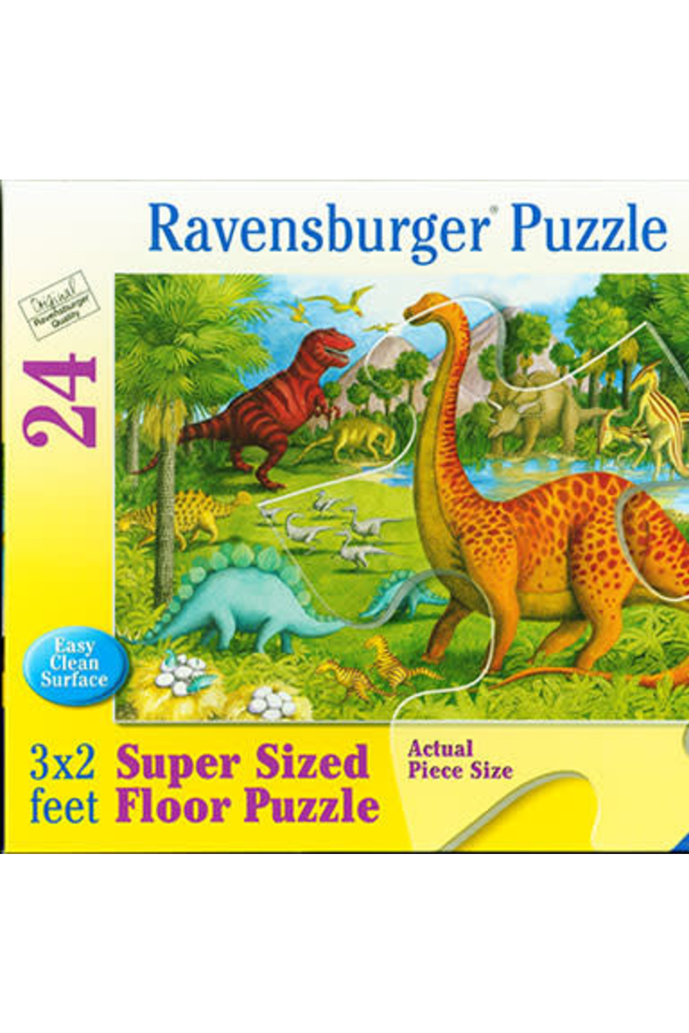 Dinosaurs of all types gather peacefully at the watering hole in this puzzle ideal for preschoolers.