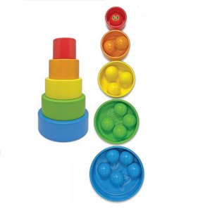 The Very Hungry Caterpillar Wood Sort and Stack Bowl Set is great way for toddlers to learn and practice skills. This set contains 5 Teakwood bowls and 15 corresponding wooden balls. Stack the bowls to make a tower or nestle them inside each other for more play. Learn to count with the balls or practice coordination and color recognition as you play. Set comes with a velcro storage bag for easy clean-up.