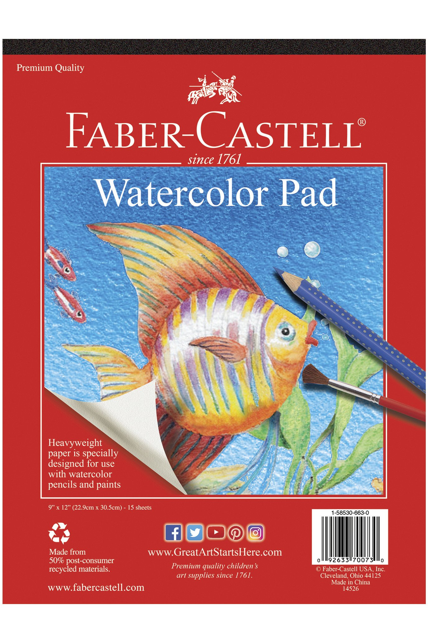 Made from 50% post-consumer recycled materials, this heavy duty paper pad is perfect for watercolor mediums of all kinds including watercolor crayons, watercolor pencils, gel sticks, and watercolor paints. 9x12,15 sheets per pad.