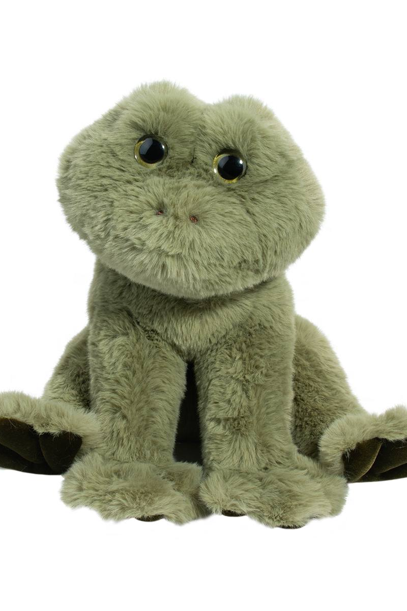 Loaded with whimsy, Finnie the Soft Frog stuffed animal has left behind his home in the marsh to become your new best friend! The sage green plush materials we’ve selected for him will both soothe and delight. Finnie features a floppy body style that will hold up to a lifetime of cuddly adventures thanks to a combination of interior beans and resilient polyester fill. His four flippered feet are finished with dark, velvet textured material on their undersides, while his facial details include stitched accents and a pair of inquisitive eyes that shine with a glittery yellow sparkle. Take in this playful amphibian as your companion and Finnie the plush Frog will have you hopping with joy!