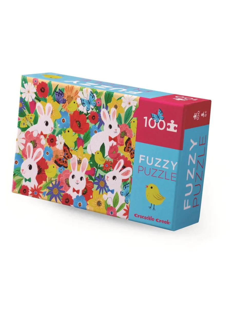 Little bunnies scamper through the meadow as the puzzle comes together and little ones will love the fuzzy accents on the box.