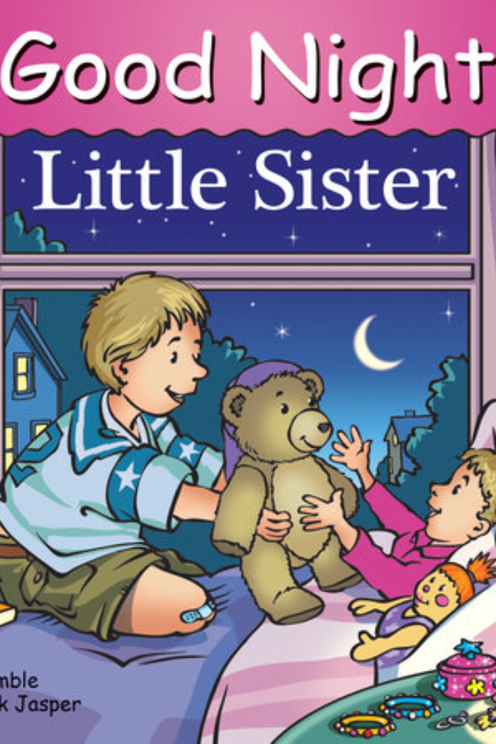 Good Night Little Sister includes eating breakfast together, playing princess, tea parties, dolls and dollhouses, playgrounds, sandy beaches, baking cookies, chasing butterflies, piggyback rides, playing hopscotch, planting flowers, ice-skating, and making snow angels together. Young readers are captivated as they recognize all the magical things that siblings enjoy. Go, little sister!