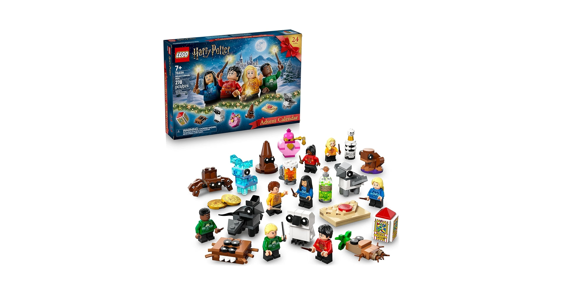 This set offers daily fun, rewarding builds and hours of creative play for kids ad the whole family during the holiday season. This daily advent will inspire kids and adult Harry Potter fans to share festive Hogwarts stories. Each character is wearing festive Christmas sweaters. Ages 7 and up