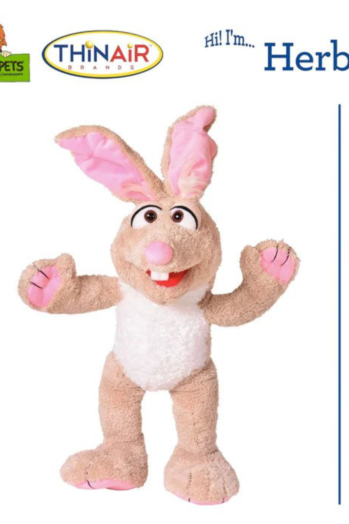 Meet your new best friend! Each Living Puppet is designed for longterm use, with high quality materials that are soft to the touch, and each character is full of personality - making them perfect for an assist at storytime or to help boost social-emotional awareness through pretend play. Herbie II measures 24 inches high (a lot of that is ears!), with a working mouth, white tummy and furry beige body.