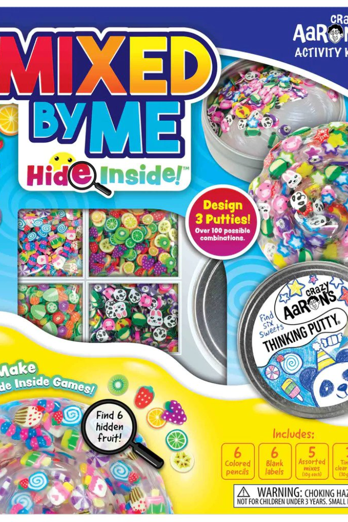 Make 3 of your very own Crazy Aaron's® Hide Inside!® putty! The possibilities are endless with the 5 varieties of mixes inside. Follow the instructions on the box to create your one-of-a-kind putty game!