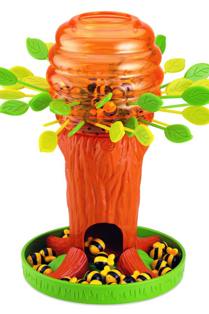 Skillfully remove the leaves without waking the bees! But be careful..if you pull out the wrong leaf, or your hand starts to shake...oops! Our pops a bee or two. Ages 3+ for 2-4 players