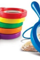 Age 3+ yrs. Safe plastic lens offer 4.5X magnification. Features a flip-out stand for hands free viewing. size 4.5" diameter.