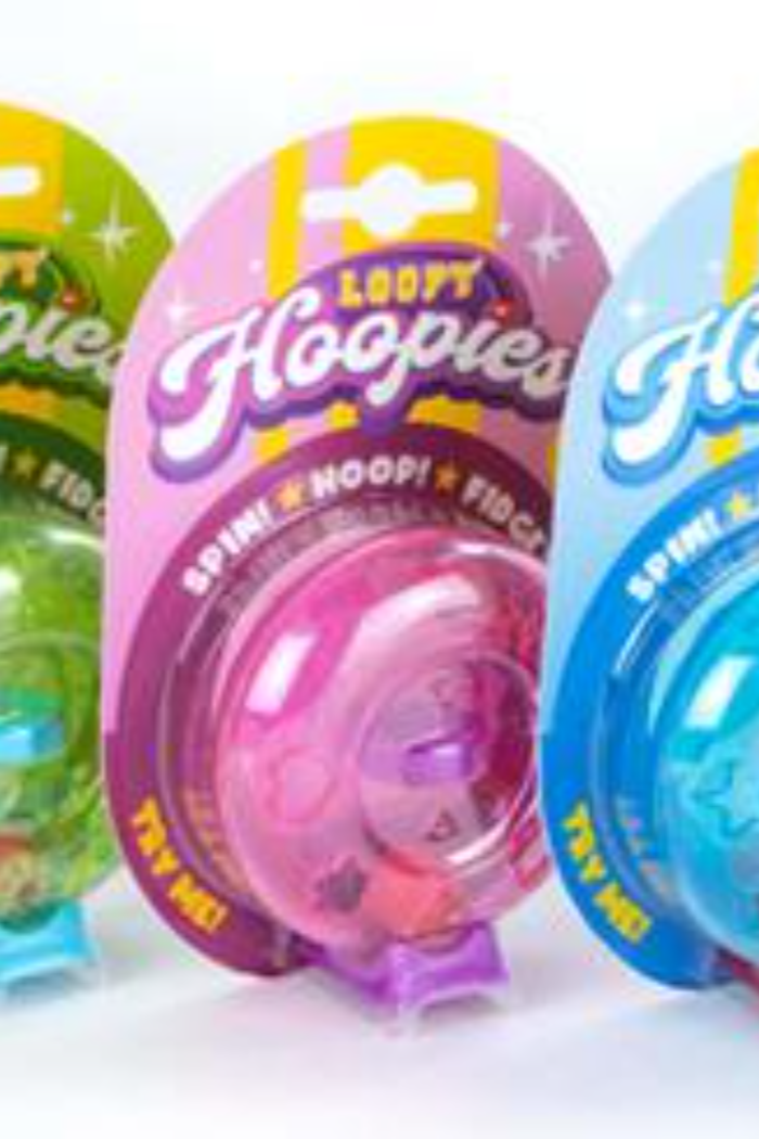 Loopy Hoopies are marble spinners perfect for younger fidgeters! These skill fidgets have the same base concept as the original Loopy Looper marble spinners but the ball stays safely sealed inside the loop so it’s perfect for practicing spinning. All Loopy Hoopies contain a hoop so that once they’ve mastered spinning the ball in the loop, they can try to stop spinning at the right moment to shoot a hoop!