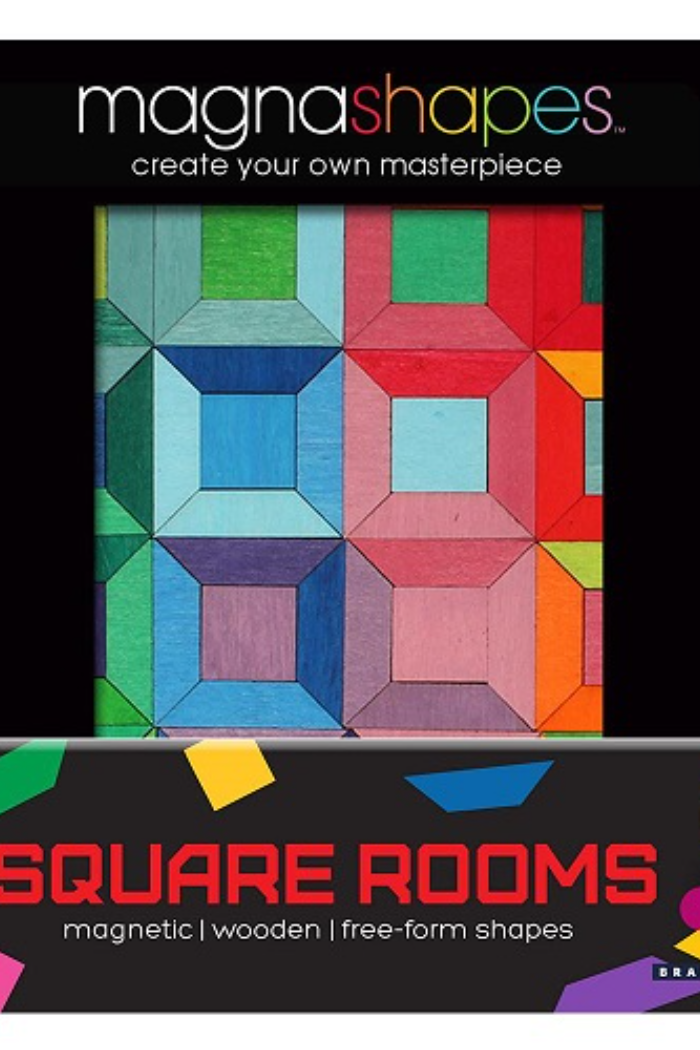 mosaic puzzle comes with 80 magnetic, wooden pieces which can be arranged to form amazing geometric patterns and shapes. BUT – don’t be confined to the tin – use on a baking tray or the fridge to create long or super tall patterns that are colourful and zany!! (The tiles will adhere to the included tin case or any other metal surface.) So it contains a unique combination of colourful geometric shapes and comes packaged in an attractive travel-friendly tin- so convienient!