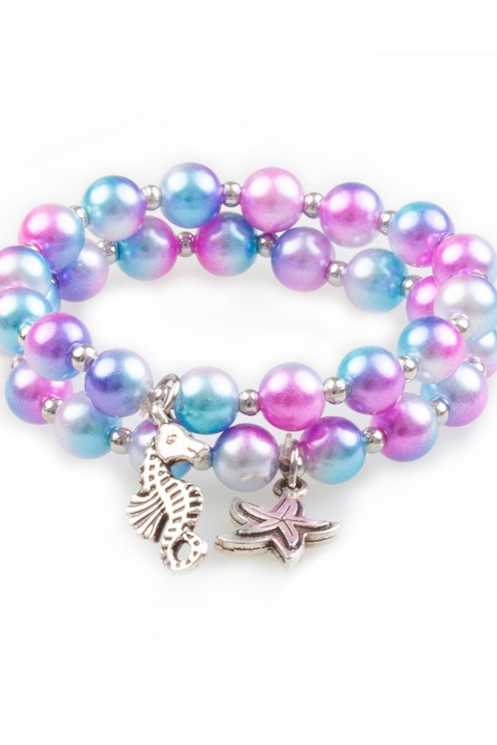 This set of 2 bracelets is perfect for any under the sea adventure or everyday mermaid wear. Featuring purple and blue beads and two metal pendants. A fun sea horse and a detailed star fish. Make sure to grab the matching necklace for double the fun!
