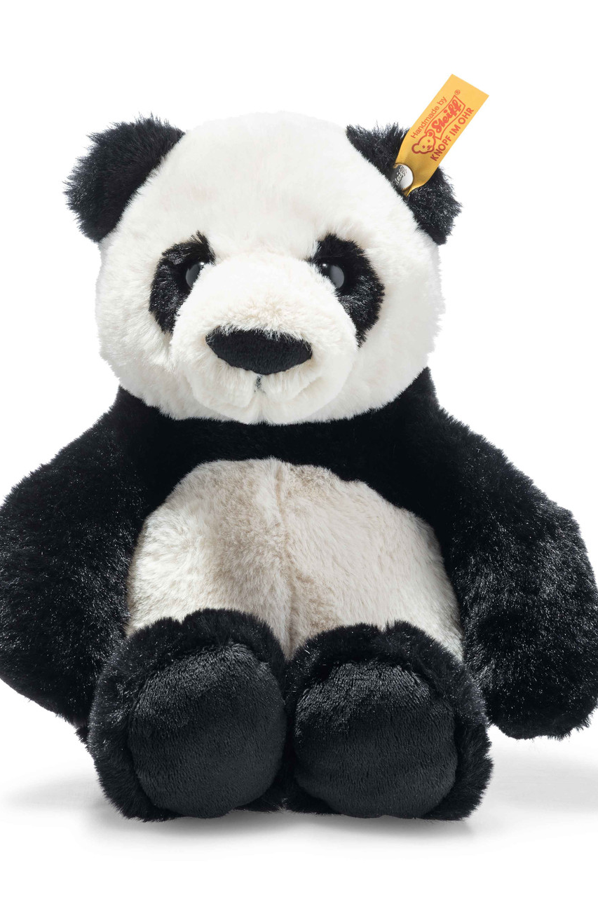 Measuring 11 inches tall, Ming panda is made of shiny black and white plush, and comes with contrasting paws and a compact, cuddly soft body. He has cute, matching fluffy ears with a stainless steel "Button in Ear". The black fur around his eyes and on his shoulders, arms and legs are characteristic of his species. Ming cannot wait to join you on all of your future adventures!
