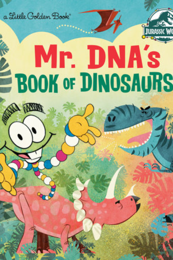 Mr. DNA, the friendly animated strand of DNA who first appeared in Jurassic Park, stars in his own Little Golden Book! And like his movie counterpart, he’ll take young fans on a tour of their favorite prehistoric creatures from T. rex to Triceratops and from Brachiosaurus to Blue the Velociraptor.Mr. DNA’s Book of Dinosaurs is perfect for young dinosaur fans ages 3 to 5 and parents who remember him fondly.