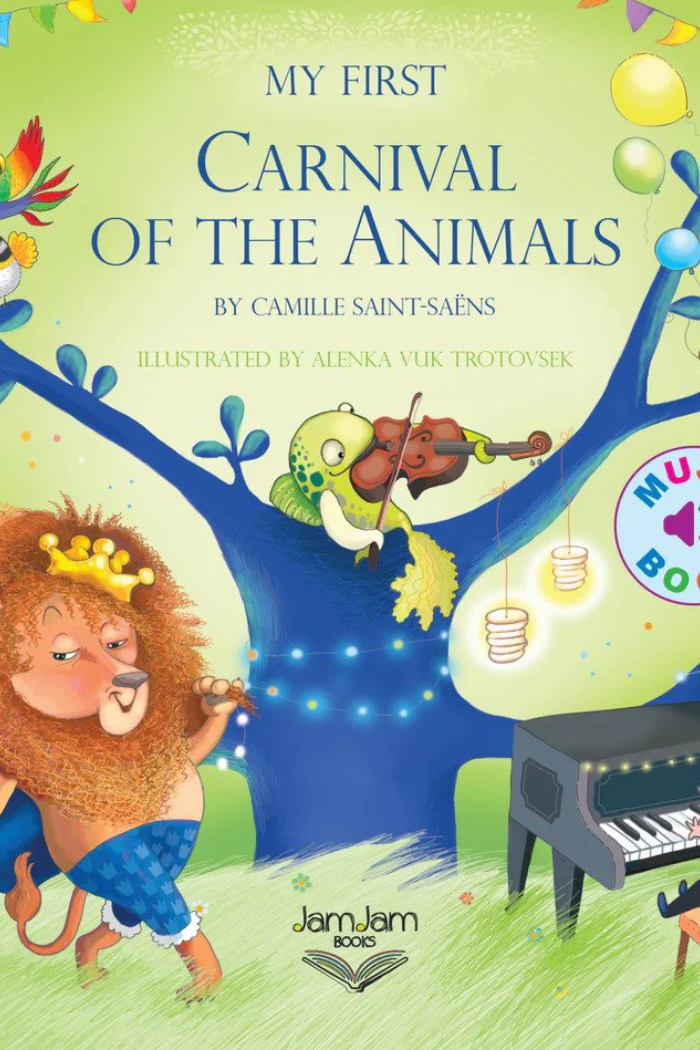 Take your child on a trip to a fantastical circus with the music from The Carnival of the Animals by Camille Saint-Saëns. The young reader will hear the roar of a proud lion, discover the dance of ancient fossils, and be mesmerized by the grace of a swan. In addition to vibrant illustrations and an engaging story, “My First The Carnival of the Animals” music board book will introduce your child to 6 musical pieces from this famous work by Camille Saint-Saëns with high-quality sound recordings from world-class performance.