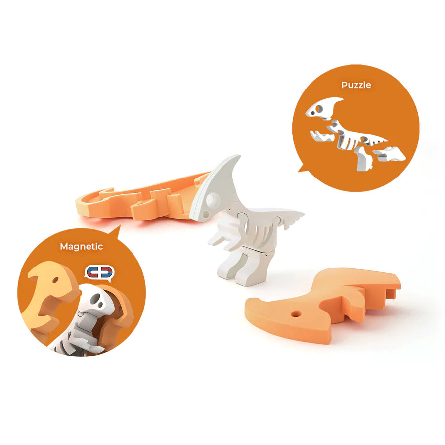 HALFTOYS® Para is part of a collectible Half-Dinosaur series that combines multiple play styles into one package. Complete with a diorama for an immersive dino adventure, the toy has interactive magnets to satisfy snapping needs and a skeleton puzzle for endless tinkering. Collect and connect them all to create your own prehistoric world.