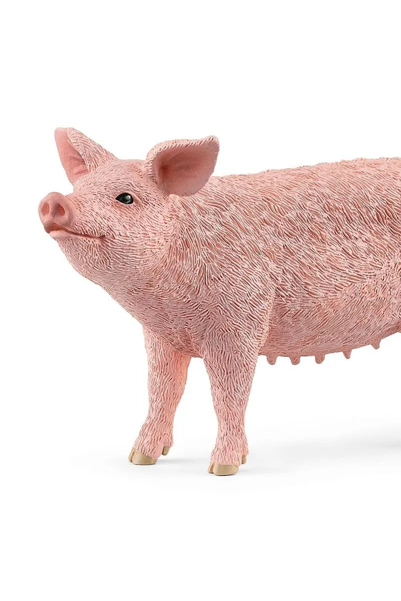 Authentic Detail. Measuring 4.06” x 1.22” x 2.36” (LxWxH), the toy pig from schleich® FARM WORLD is E-I-E-I-Oh so realistic, from its short-bristled skin to its snout-standing facial features.