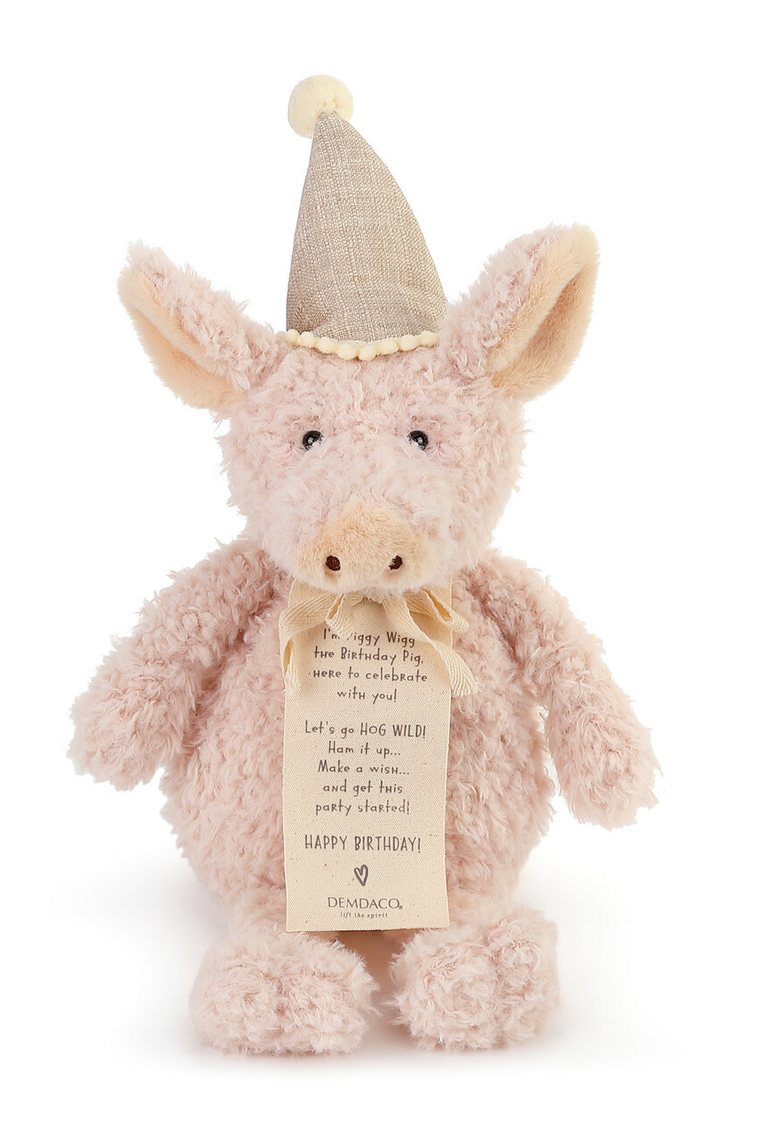 Get ready to hear squeals of delight when you give Piggy Wigg the Birthday Pig to the youngest birthday boy or girl in your life. This friendly, huggable plush is soft and strong, ready for the kind of birthday fun that only a child could dream up. Surface washable and free of removable parts, Piggy Wigg holds up to spirited play on birthdays and every other day of the year. Delight a member of your own family, or give as a thoughtful gesture to a friend or co-worker with a growing baby. Appropriate for boys and girls, Piggy Wigg’s classic, soft colors keep the focus off of gender and where it belongs: on fun!