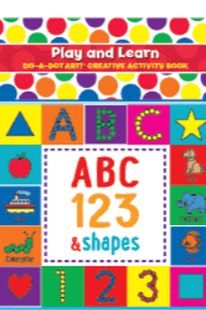 8 1/2" by 11" size book with 28 pages, heavy card stock for paint or crayon use. Simple pictures with wide black outlines featuring ABC's, 123's and shapes.