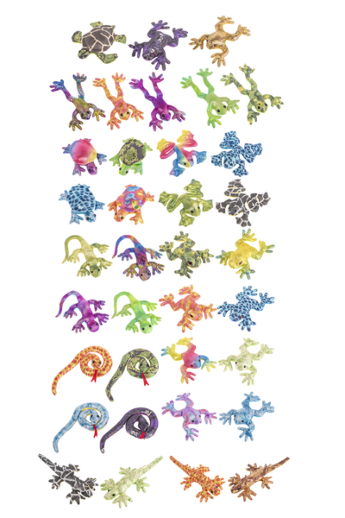 Lizards, snakes, geckos, tree frogs, pond frogs, toads, and turtles make up this diverse group of reptiles straight from the imagination and into your playroom!
