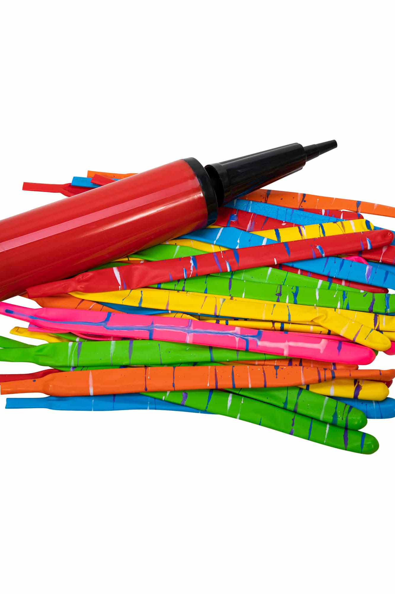 Just pump them up and let them go to see them zoom all over the room! Get everyone’s attention with these fun and colorful balloons! Kit includes 30 multi-colored balloons and pump.