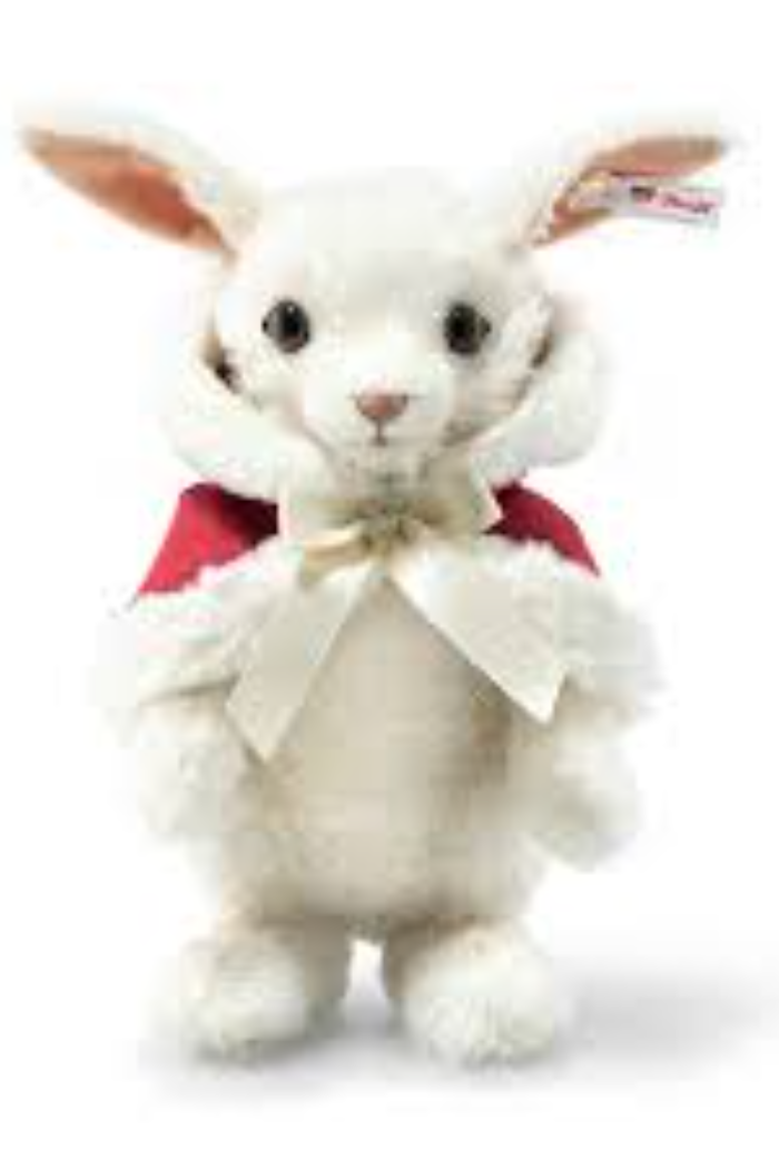 007545. Introducing the Steiff Christmas Rabbit with Wool Cape limited edition, a charming and unique addition to the Steiff animal family. Expertly crafted with meticulous attention to detail, this endearing rabbit will add a perfect touch of whimsy and holiday cheer to any home this Christmas season.