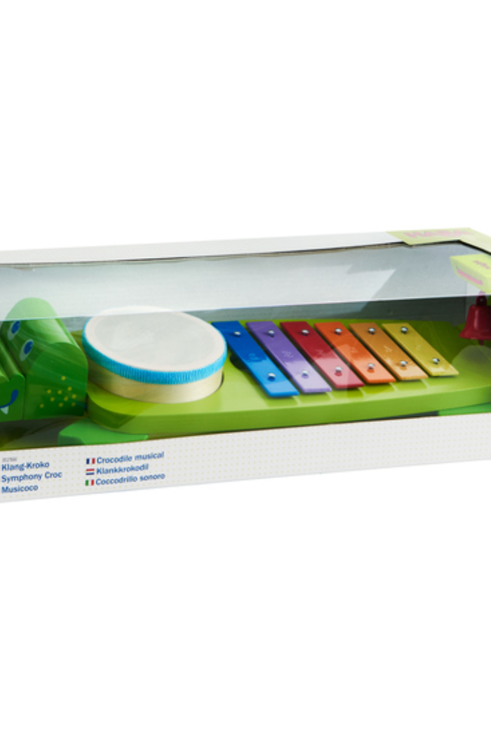 There’s music in the air – Symphony Croc is here! Children are enthralled by his 4 exciting instruments, washboard, drum, xylophone and bell. Very practical: The two mallets allow for children to play entertaining duets.