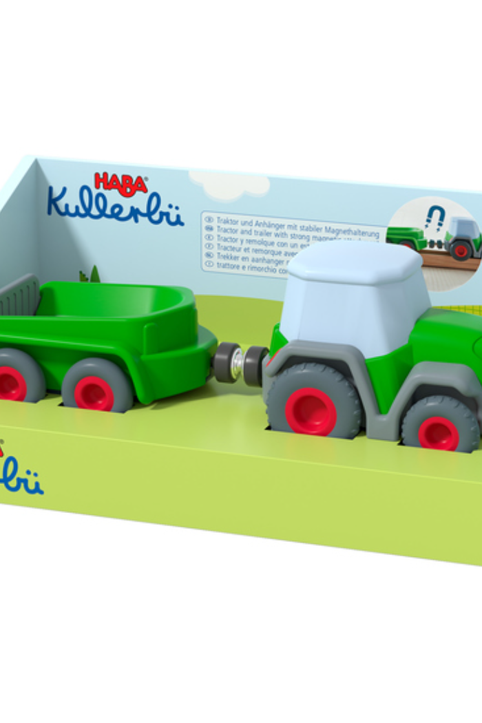 The tractor with trailer drives over fields and meadows – as well as all Kullerbü play tracks. Plenty of farmyard fun! Guaranteed to make the hearts of little farmyard fans beat faster.