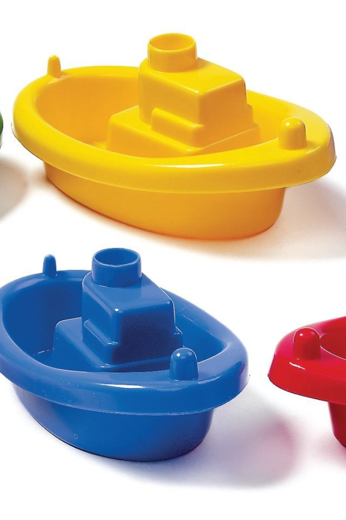 tugboat toys come in four base colors: red, yellow, blue, and green