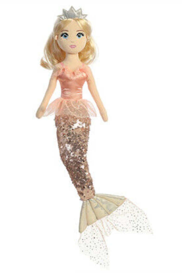 Age 3+ yrs. Soft fabric Mermaid 18" with embroidered eyes.