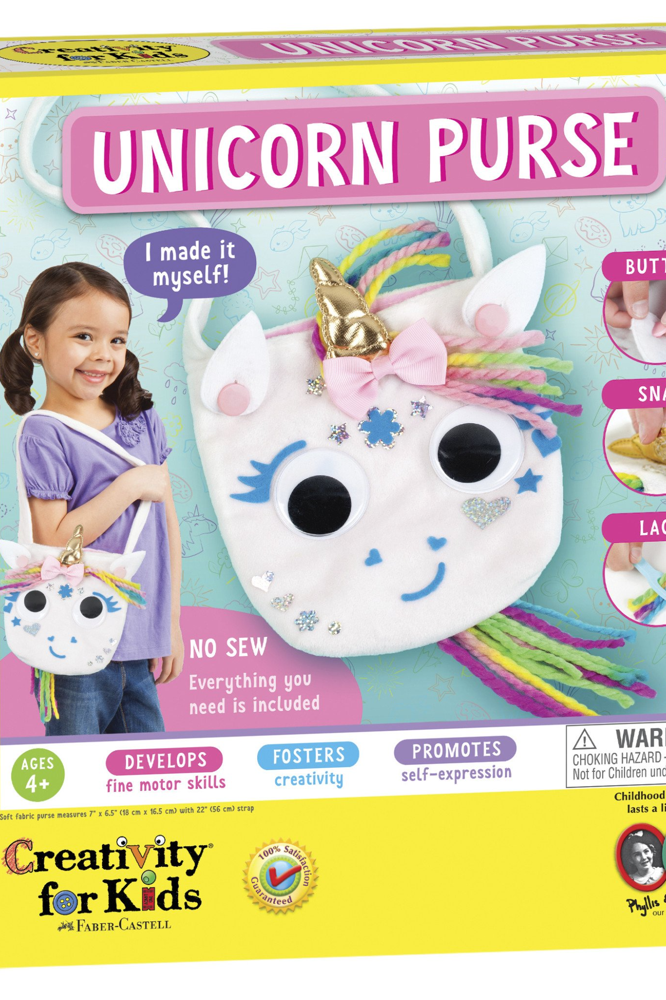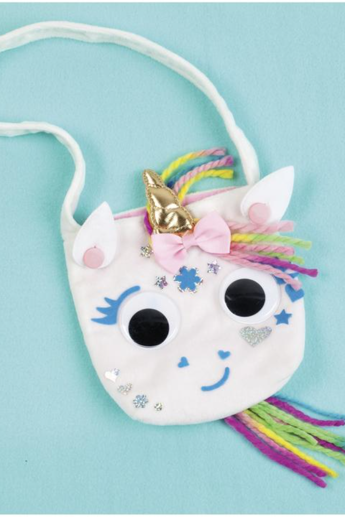 Transform this no-sew bag into a super-soft, velvety unicorn purse. Designed with little fingers in mind, this beginner craft develops fine motor skills, fosters creativity and promotes self-expression.