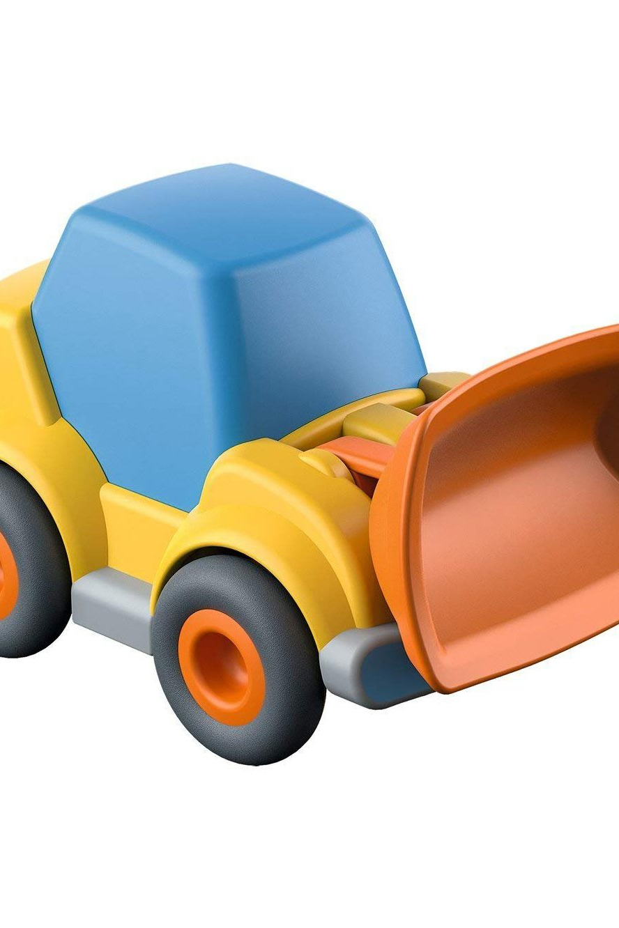 Age 2-8 yrs. Designed with momentum motor ( push & go) for extra speed. Can push balls ahead of itself and transport them on the bucket. Bucket has 2 tipping positions. Free play and use on car tracks. Material: plastic.