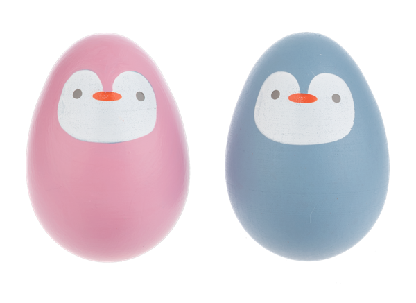 These wood penguin rattles come in pink or blue body with an orange beak, grey eyes and a white face. A great way to entertain your little one while encouraging a love of music in them.